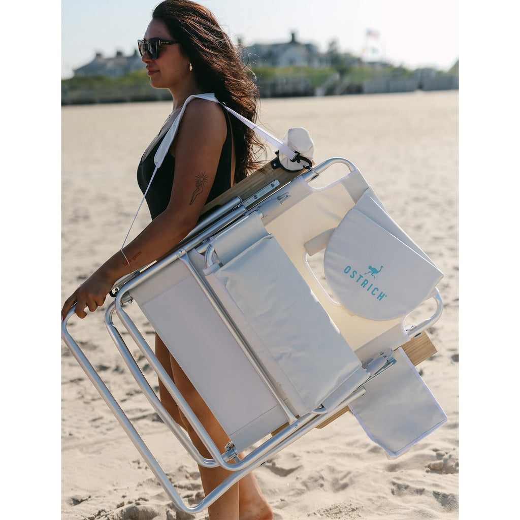 Tire alguns raios no conforto incomparável da cadeira de praia reclinável leve Ostrich 3N1, a melhor companhia para sua praia, acampamento ou aventuras ao ar livre. Um dia na praia ou passeio esportivo não está completo sem uma cadeira confortável! Com a cavidade facial patenteada para abrir/fechar, cavas e ajuste de 5 posições, esta cadeira dobrável para uso externo permite que você se deite confortavelmente de costas ou barriga, perfeita para passeios à beira da piscina ou bronzeamento no seu quintal. Se você prefere sentar-se na vertical ou deitada, esta cadeira de banho pode acomodar a posição desejada com 3 opções adicionais de apoio para os pés para 15 configurações no total. Os apoios de braço de madeira extra-largos adicionam estilo à função, enquanto o tecido de malha respirável garante que você obtenha algum fluxo de ar. Se você sentir sede, esta cadeira de bronzeamento tem um suporte de copo conveniente para manter suas bebidas por perto. Graças à estrutura de alumínio resistente, a cadeira externa pode suportar até 125 kg e resiste à ferrugem para uso duradouro. Quando você estiver pronto, a cadeira de acampamento se dobra e inclui uma alça de transporte para facilitar o transporte. Se você estiver passando um dia na praia ou simplesmente relaxando no seu quintal, esta cadeira é a escolha ideal para relaxamento e lazer. Vá ao ar livre com esta cadeira 3N1 da Ostrich completa com várias funções, estilo clássico e conveniência em movimento.